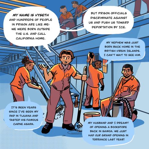 While Vyseth is fictional, his story is based on the experiences of California immigrants and refugees. It shows a small glimpse of how the threat of deportation painfully jeopardizes ties to their families and communities. For many incarcerated community members and their families, the financial and structural obstacles of the prison system strain relationships with loved ones. Being flagged for deportation by our state prison officials is yet another blow. These experiences — of families being torn apart — are why immigrant communities are leading a statewide movement for equality and belonging.