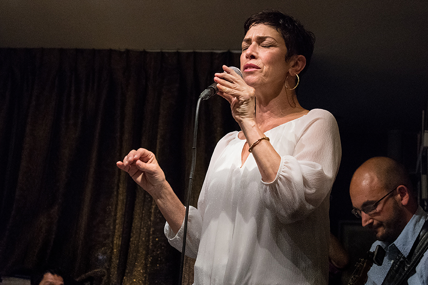 Angie Doctor sings with the John Calloway Quartet on Aug. 3 during a live jazz session at Bird & Beckett Books and Records in San Francisco. Photo: Bob Hsiang