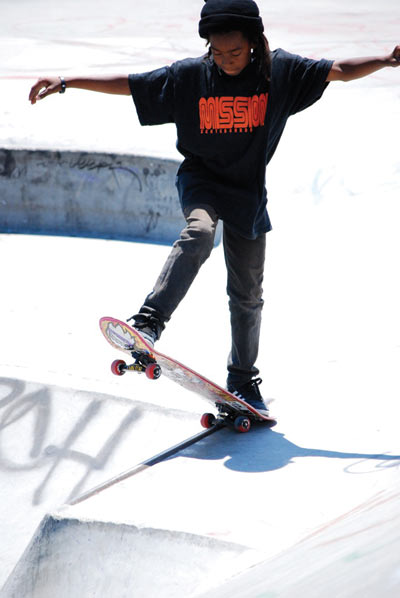 Un joven patina en las rampas durante la competencia de patinetas durante el 15avo Anual Festival de Arte Urbano Juvenil en el Parque La Raza. Photo by Vanessa Serpa