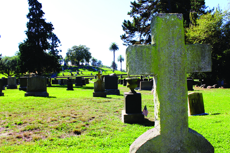 Dirigiéndose hacia el este de San Francisco se encuentra el Mountain View Cemetery, fundado en 1863 y diseñado por el arquitecto paisajista Frederick Law Olmsted —el mismo del Central Park de Nueva York. El cementerio cuenta con más de 200 acres de colinas y vistas espectaculares que albergan algunas de las tumbas donde reposan las personas más ricas en la historia del Área de la Bahía.
