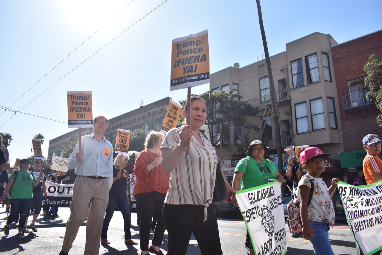 Las protestas en el Área de la Bahía comenzaron el 26 de octubre y continuarán todos los sábados hasta que el régimen fascista Trump-Pence sea expulsado. El pasado sábado 2 de noviembre, el movimiento Rechaz al Fascismo se cruzó con las celebraciones locales del Día de los Muertos. Marchando por el Distrito de la Misión hacia el Centro Cívico de San Francisco, la multitud animada coreó “Trump y Pence #OutNow! # ¡Fuera Ya!”, deletreando el mensaje a coro.