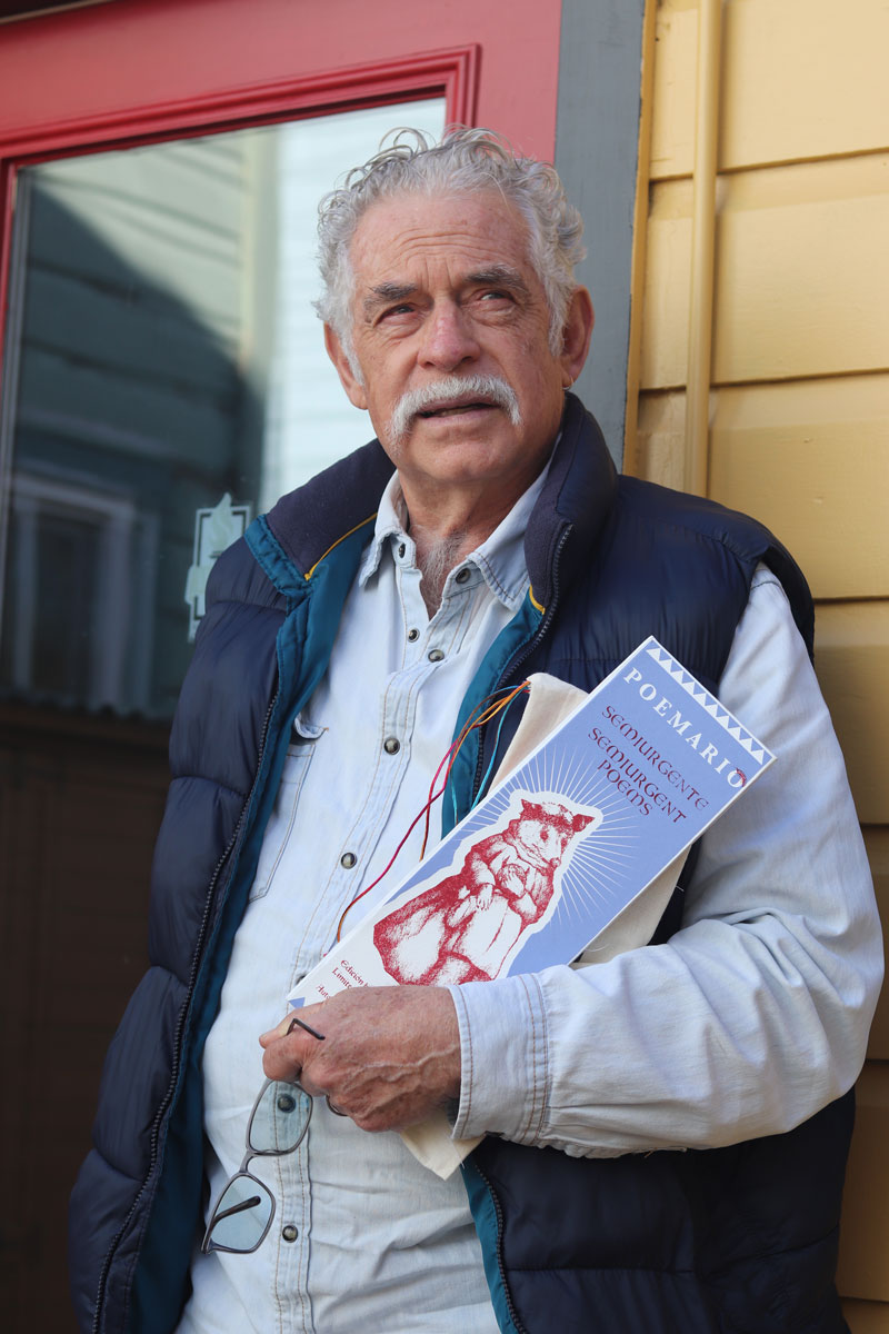 Ese momento, entre otros, está capturado en Semiurgent Poems – Poemario Semiurgente, un libro bilingüe de poesía y arte hecho a mano, que fue presentado el mes pasado. La obra, primer libro publicado de Barón, presenta siete poemas bilingües, cada uno en inglés y español. Son una colección de lo que su autor define como “poemas encontrados”, tributos literarios a algunos de los momentos fugaces pero inolvidables que Barón, ahora de 75 años, ha escrito a lo largo de los años. Son momentos espontáneos y no planeados. Y memorables tal vez por eso.
