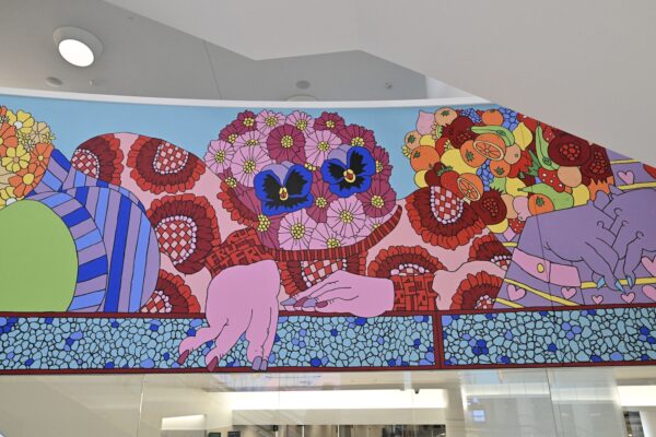 En una reunión para decidir el diseño final del mural, los artistas de Precita Eyes y miembros de la comunidad preguntaron: ¿qué significa atención médica? “Es agradable ver cómo todos interactuaron con la idea de que todos estamos interconectados en una gran ciudad”, dijo el artista asistente Somer Taylor, a quien se unió la artista principal Gabi Moreta. «Creo que de ahí surgió la idea del arcoíris», dijo Taylor. «Porque la comunidad adopta muchas formas».